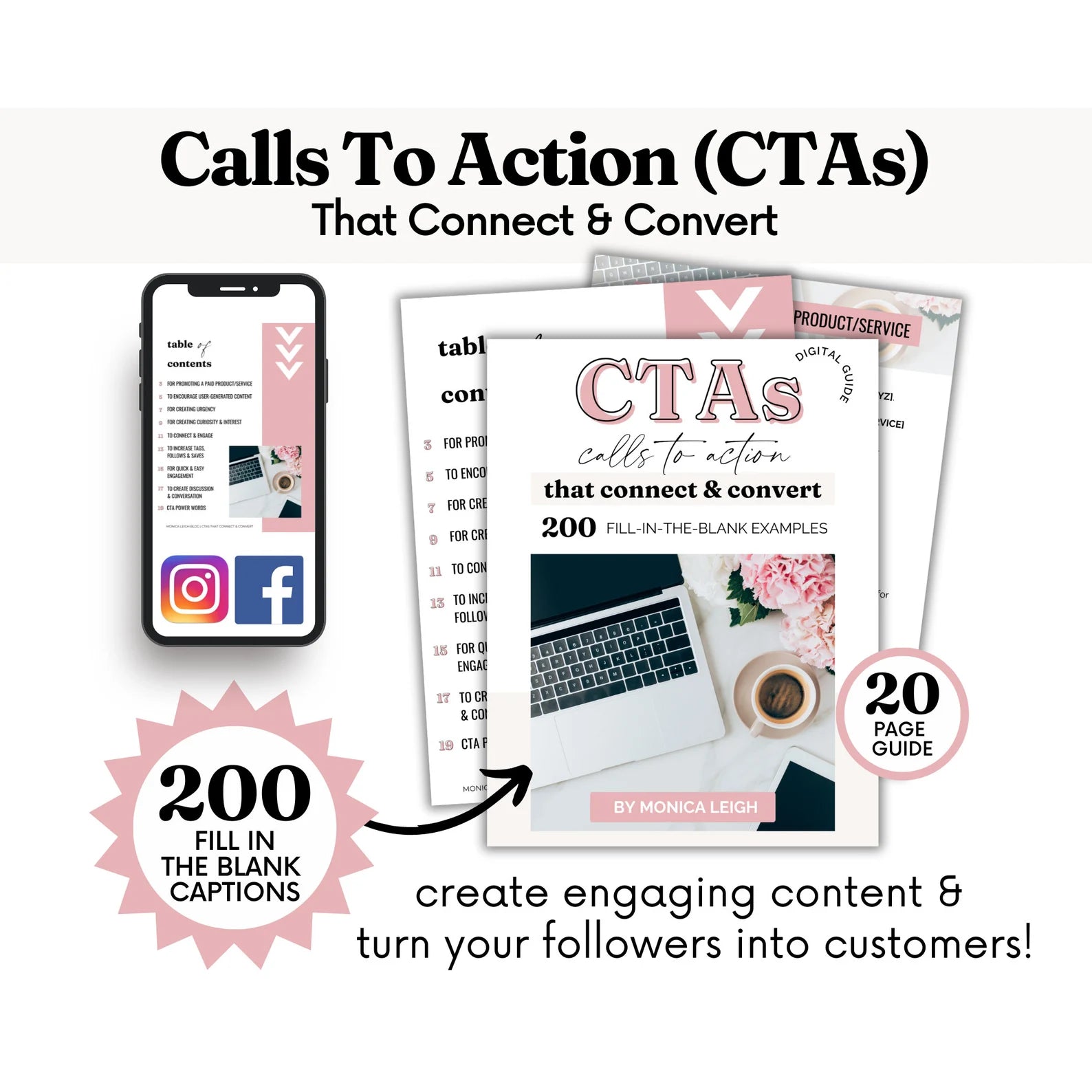 In this Digital Guide, you will get fill-in-the-blank Call To Action examples you can copy & paste so that your followers ENGAGE, TAKE ACTION, & BUY!