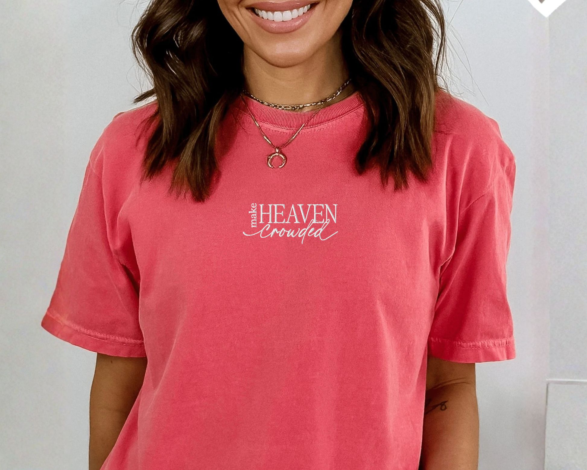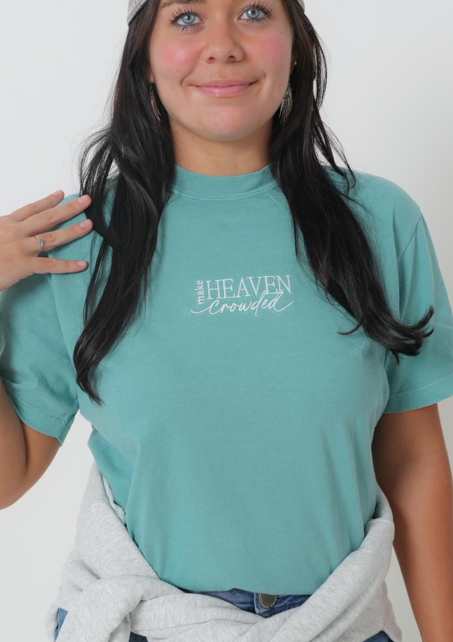 ✨This Make Heaven Crowded embroidered tee is a gentle reminder to live with intention, kindness, and purpose. It speaks to choosing compassion, uplifting others, and leaving people better than you found them. Wear it when you want to spread light, love and a message of faith.